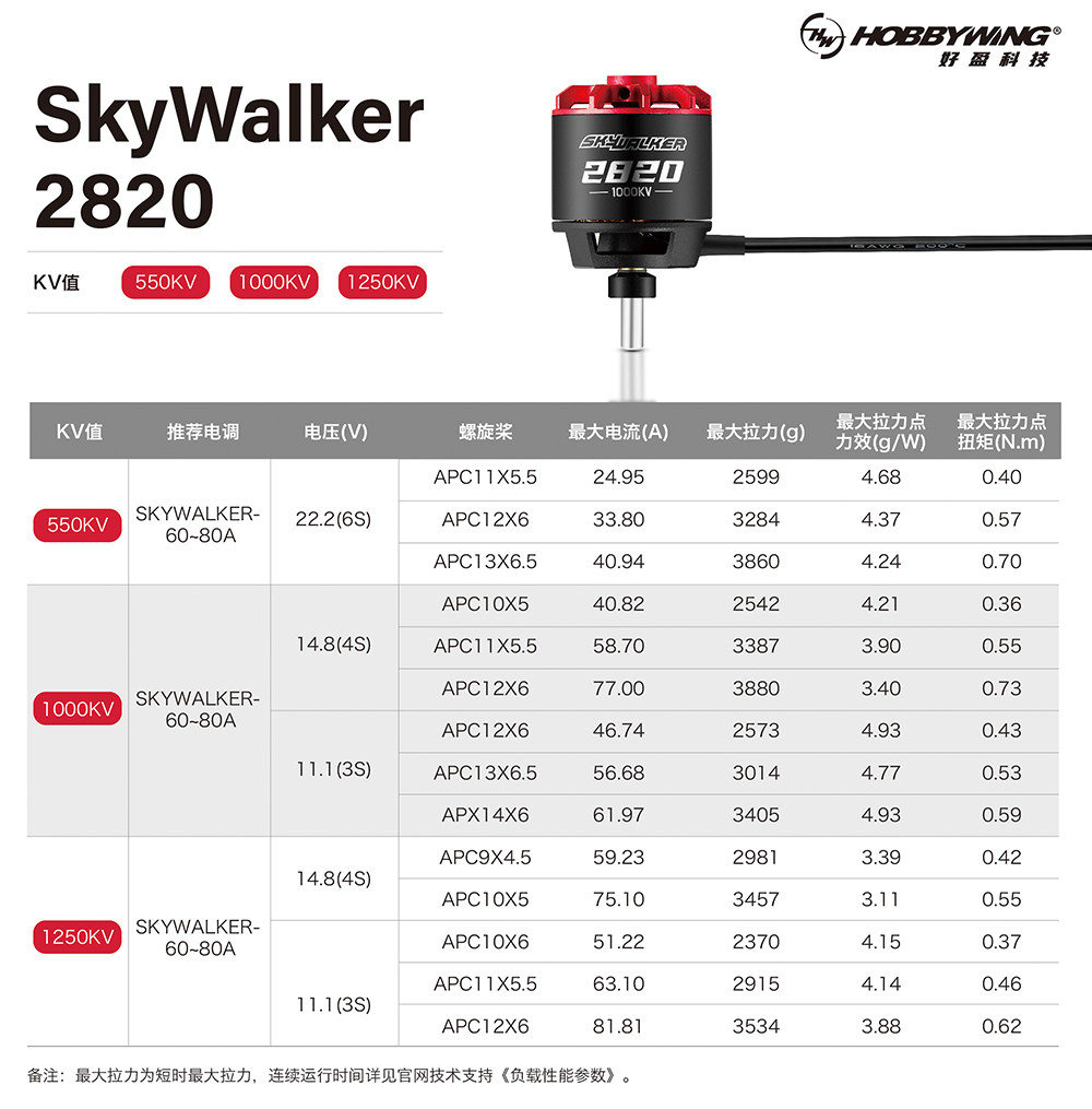 产品名称:Skywalker 2820 SL 550KV