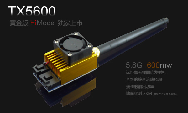 最新版 5.8g 600mw 无线图传系统黄金版,采用了滚珠无噪声风扇,运行更加平稳,实测地面无遮挡拉距,使用原装天线,距离可达 2000米画面可稳定接收,采用12db的小平板天线,距离比原装天线远1/3. 空中距离将远超过地面距离!此版本外配通用连接线,用户无需单独接线即可轻松连接.