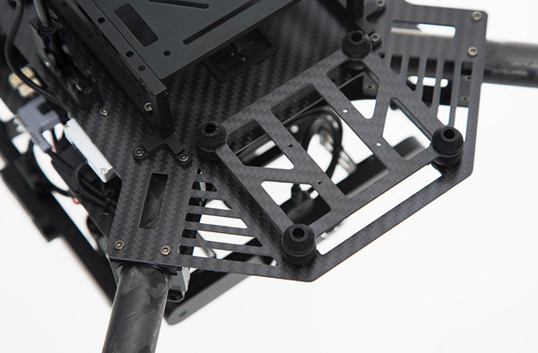 整机大部分结构采用碳纤维材料搭建,轻盈牢固。每个机臂均内嵌经过精细调整和适配的阻尼吸振材料。所有关键组件在飞行中保持纹丝不动,为您带来前所未有的低振动平台。