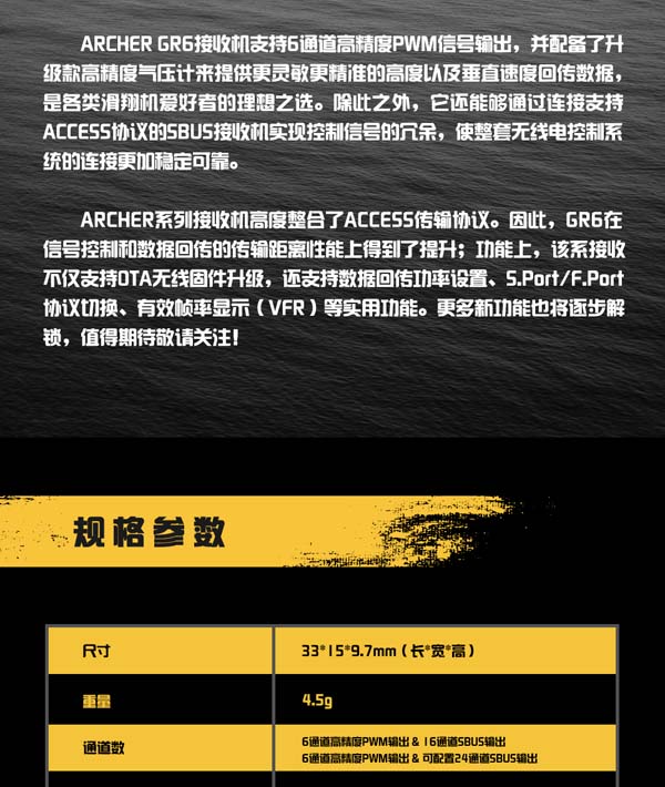 Frsky 睿思凯 Archer GR6 6通道 接收机 ACCESS 内置气压计 信号冗余