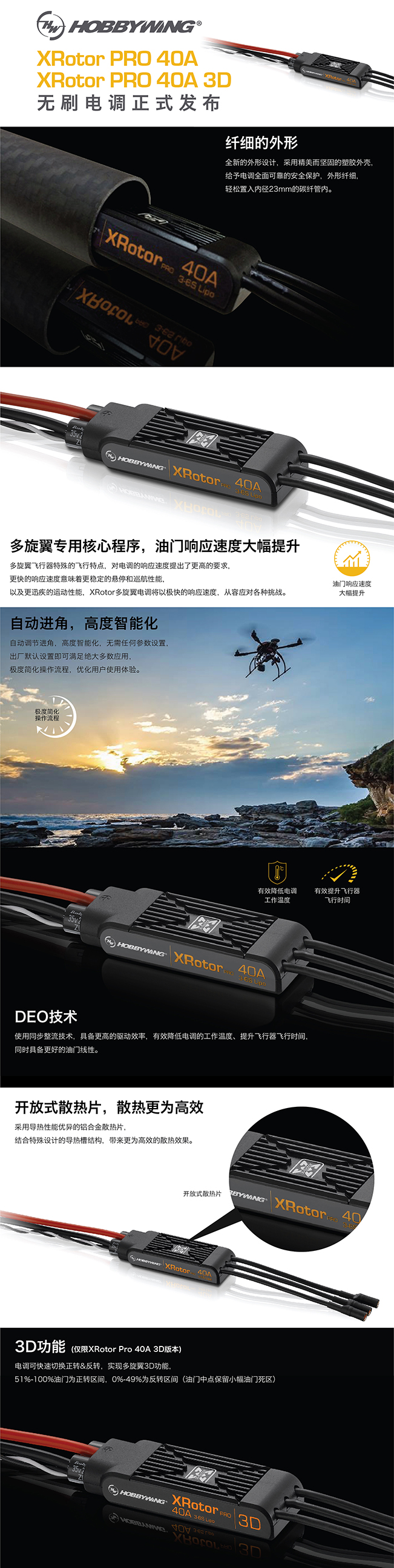 HOBBYWING 好盈 乐天 XRotor-Pro-40A 专业版 多旋翼 无刷电调 电子调速器(两支装)