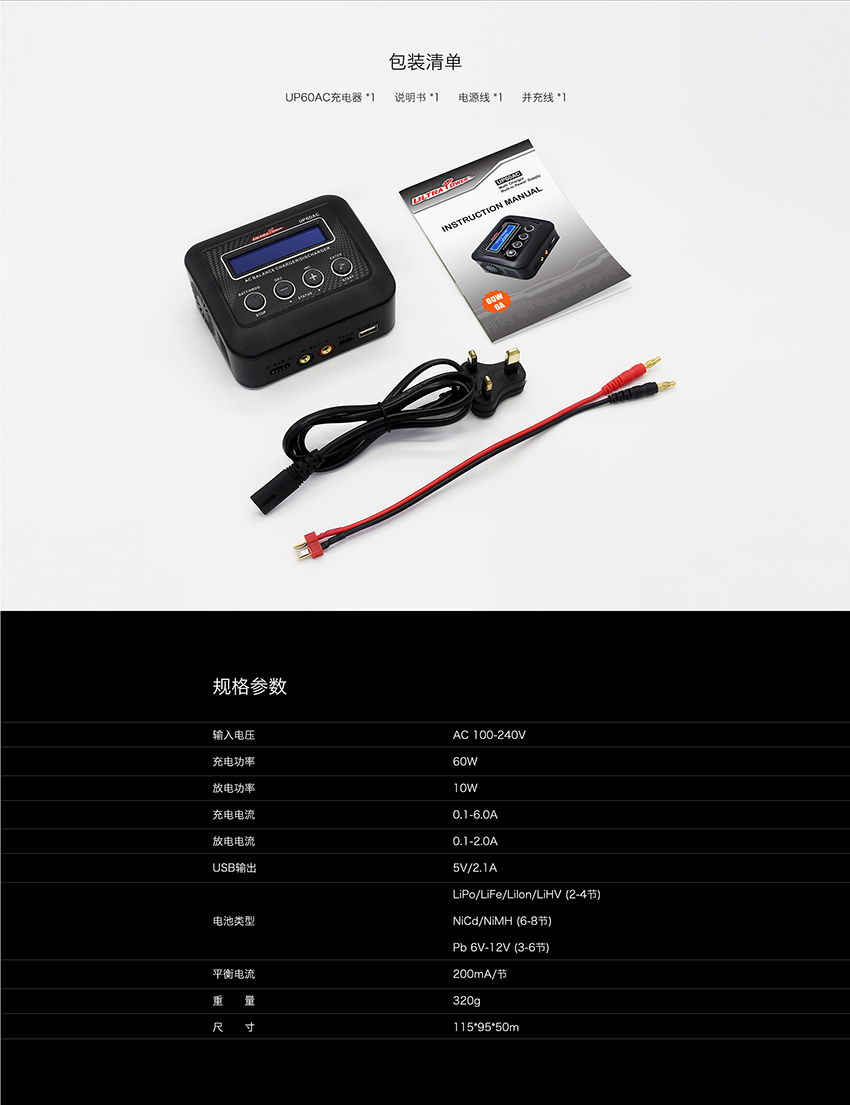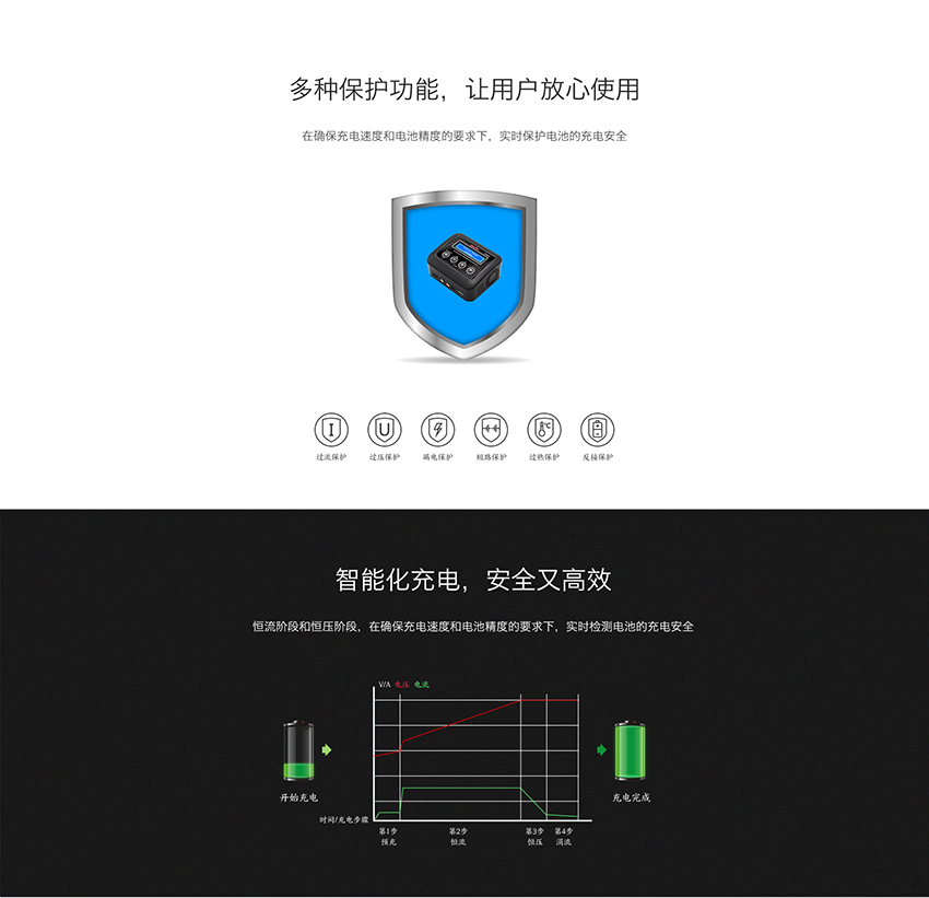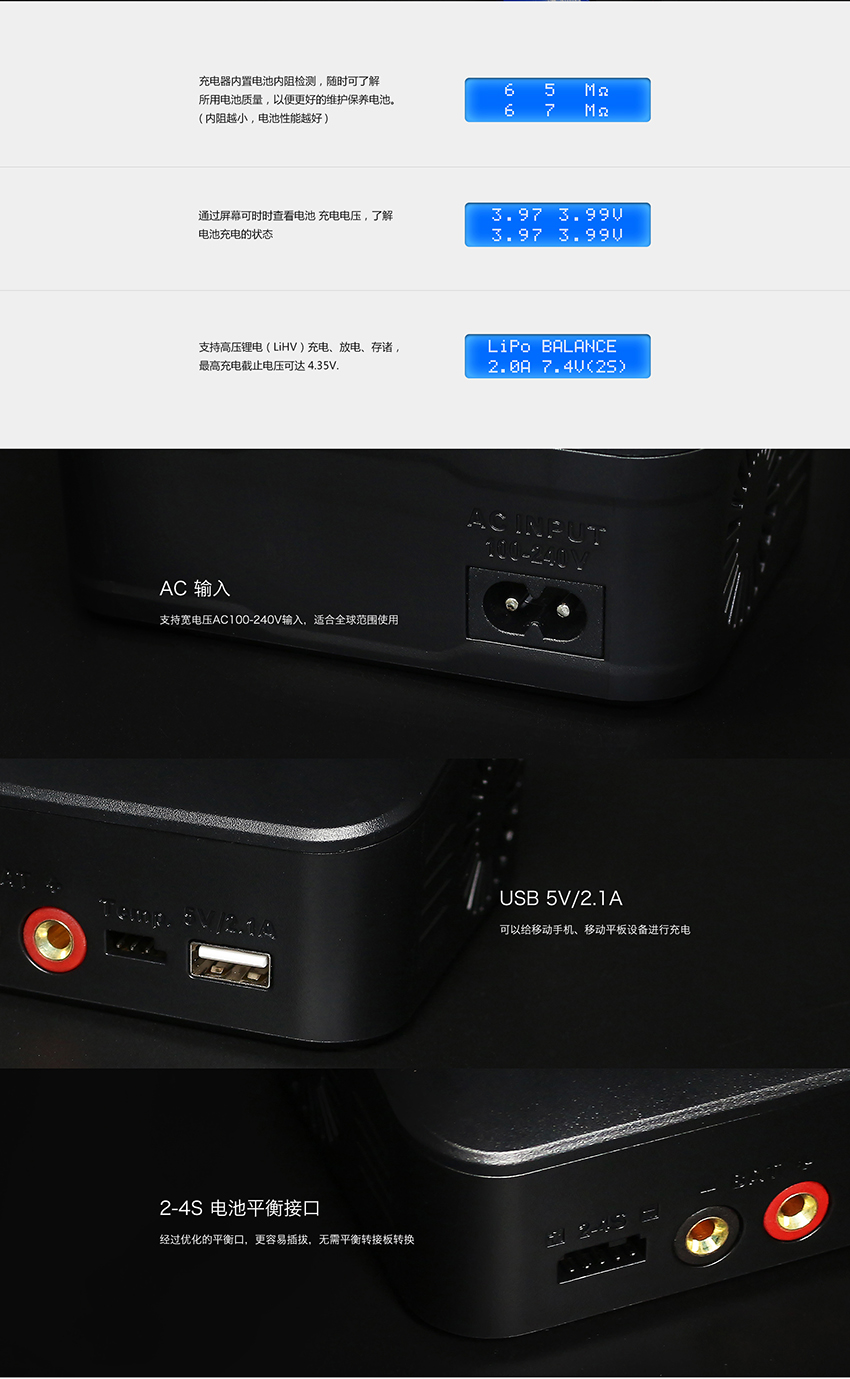 电池类型:LiPo/LiFe/Lilon/LiHV(2-4节)