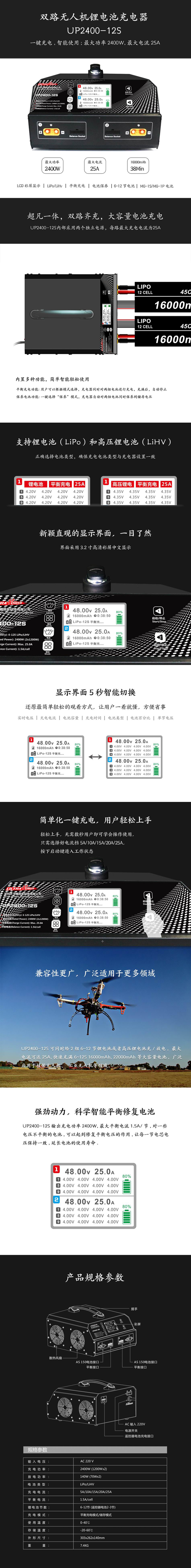 输入电压: AC 110V充电功率: 2400W (2x1200W)