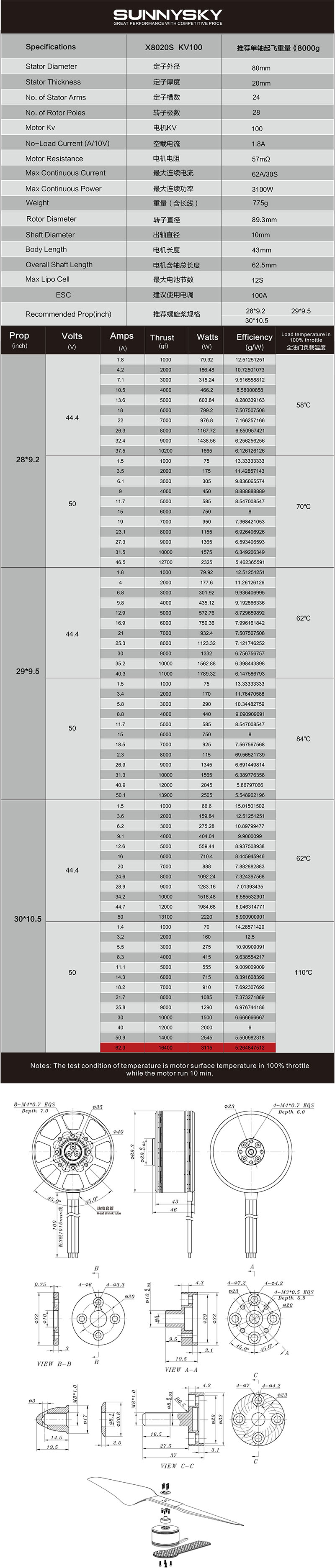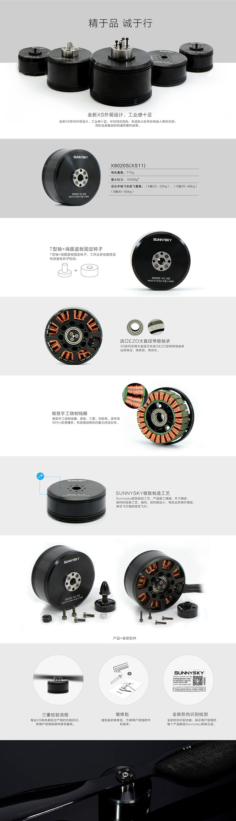 SUNNYSKY 朗宇 XS8020S 100KV 盘式电机 植保电机