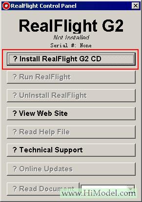 一般来说将光盘放入光驱后,会自动打开一个向导画面(见下图),在这里我们可以根据画面的提示,点击“? Install RealFlight G2 CD”按钮即可打开安装程序。