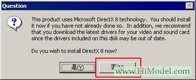 文件复制完成后会提示安装DirectX 8.0,如果你已经安装了DirectX 8.0(或更高版)则在这一步选择“否(N)”,如果没有安装的可以选择“是(Y)”进行安装。