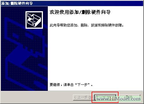 双击“添加/删除硬件”图标后会打开“添加/删除硬件向导”,点“下一步(N)”