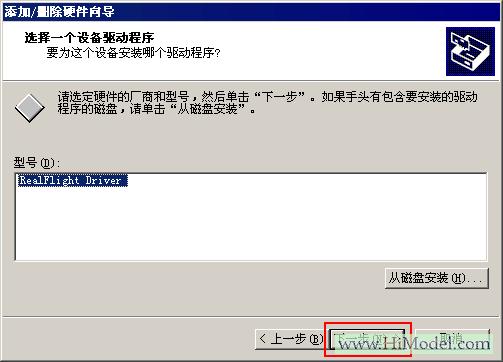 在中间的“型号”列表中会显示“RealFlight Driver”,选择它然后单击“下一步(N)”