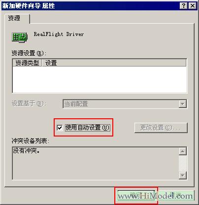 十八、在点击“资源”后会显示RealFlight Driver的资源,这里要选择中间的那个“使用自动配置”(也就是在前面的方框中打上对勾),然后点“确定”