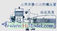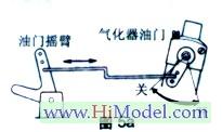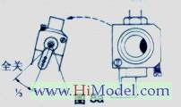 这种可调节式油门仅在遥控用发动机上才有。全部打开时,进气量最大,发动机转速高。当油门关小,进气量减少,转速即降低。油门通过摇臂受遥控设备中的舵机控制。见附图5a。