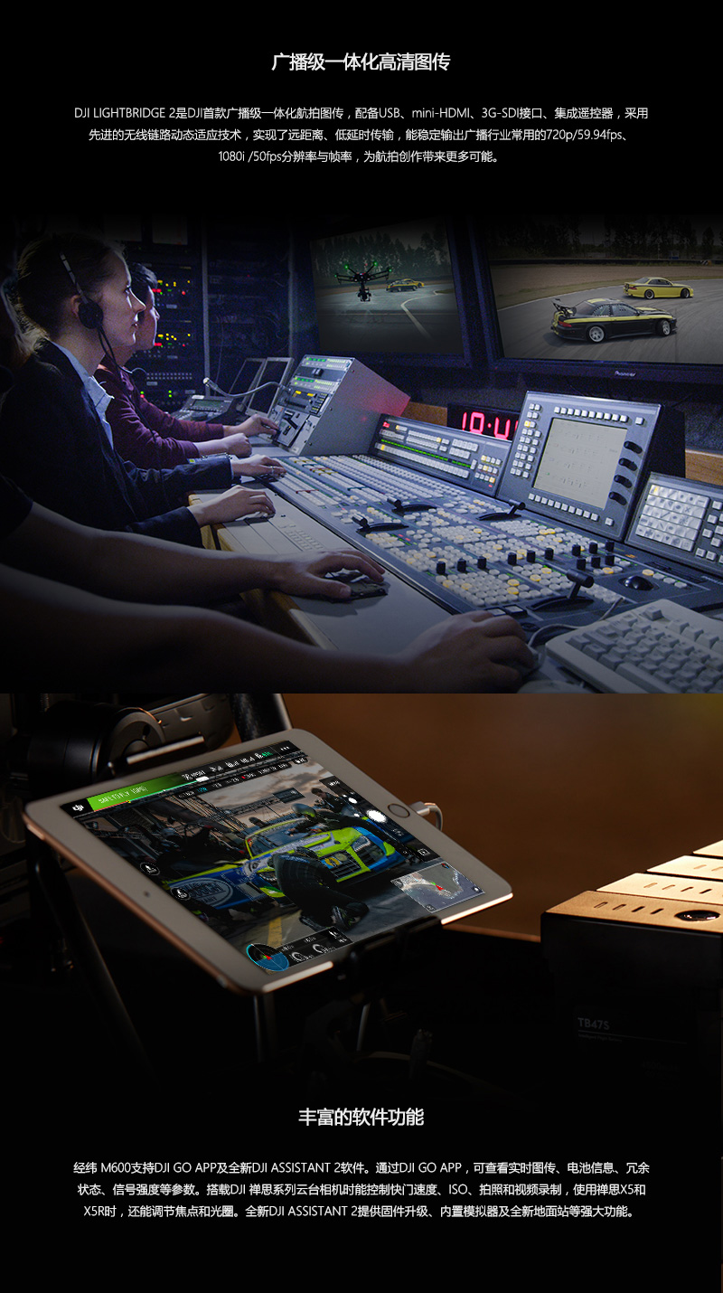 温馨提示:当经纬M600搭载“如影”Ronin-MX时,如需要将相机实时画面回传至地面监控设备,可使用线缆连接相机与M600的Lightbridge 2图传。