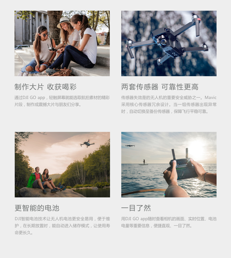| 重量 (含电池及桨) | 734 g(不包含云台保护罩) 743 g(包含云台保护罩) |