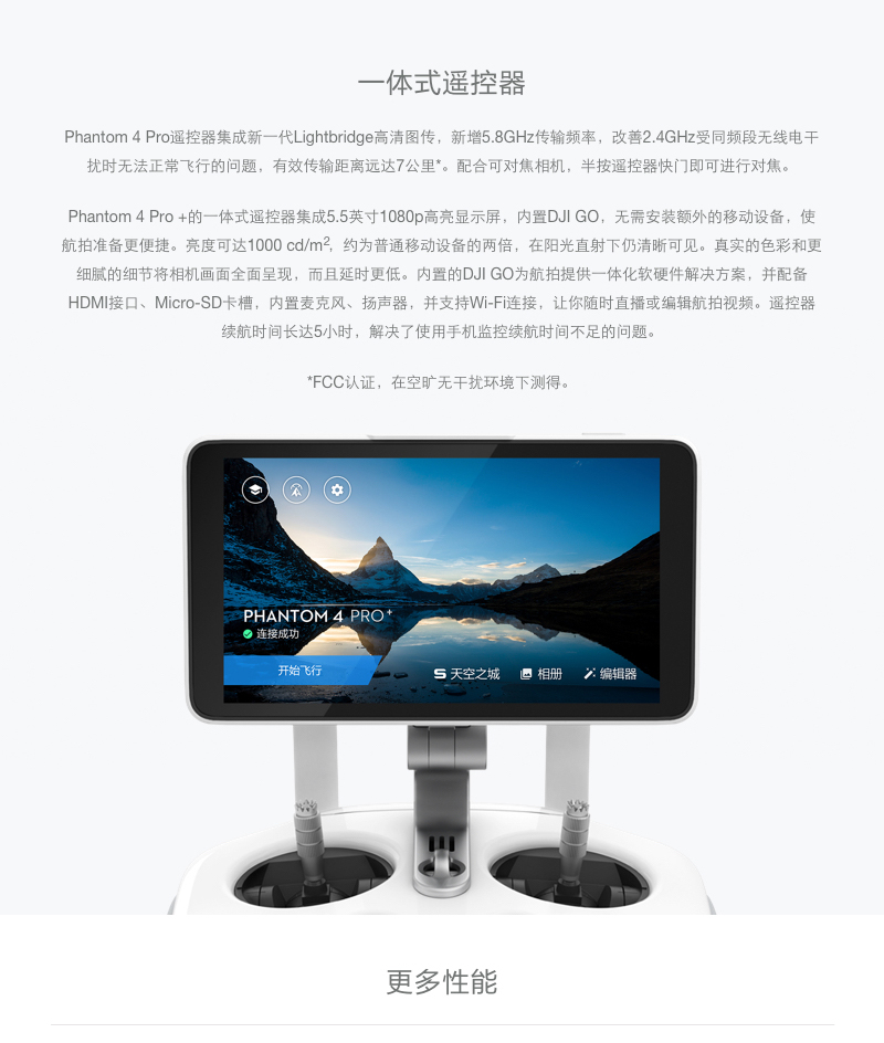 | 最大信号有效距离 | 2.400 - 2.483 GHz(无干扰、无遮挡) FCC: 7000 m;CE: 3500 m;SRRC: 4000 m 5.725 - 5.825 GHz(无干扰、无遮挡) FCC: 7000 m;CE: 2000 m;SRRC: 4000 m |