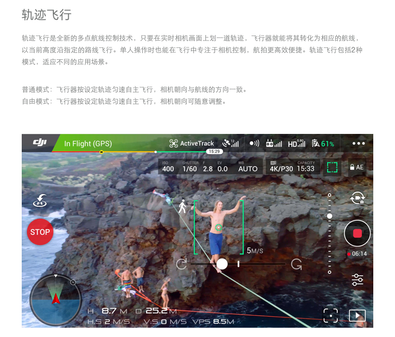 | 最大水平飞行速度 | 72 km/h(运动模式);58 km/h(姿态模式);50 km/h(定位模式) |