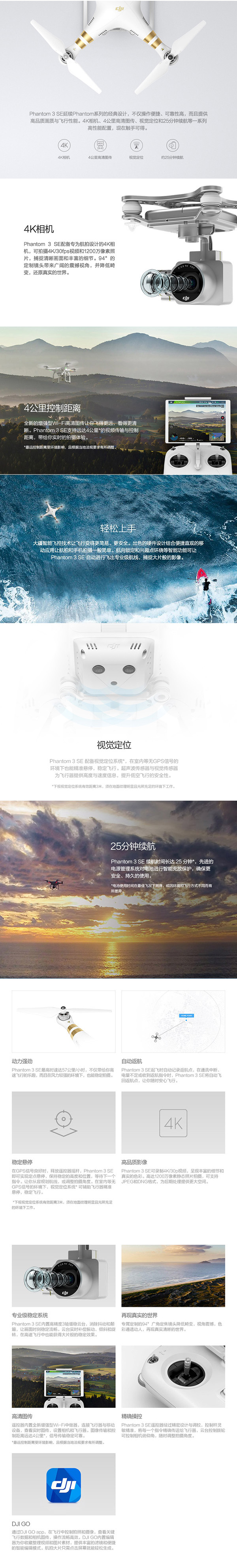 DJI 大疆 Phantom 3 SE 精灵 3 SE 4K航拍飞行器