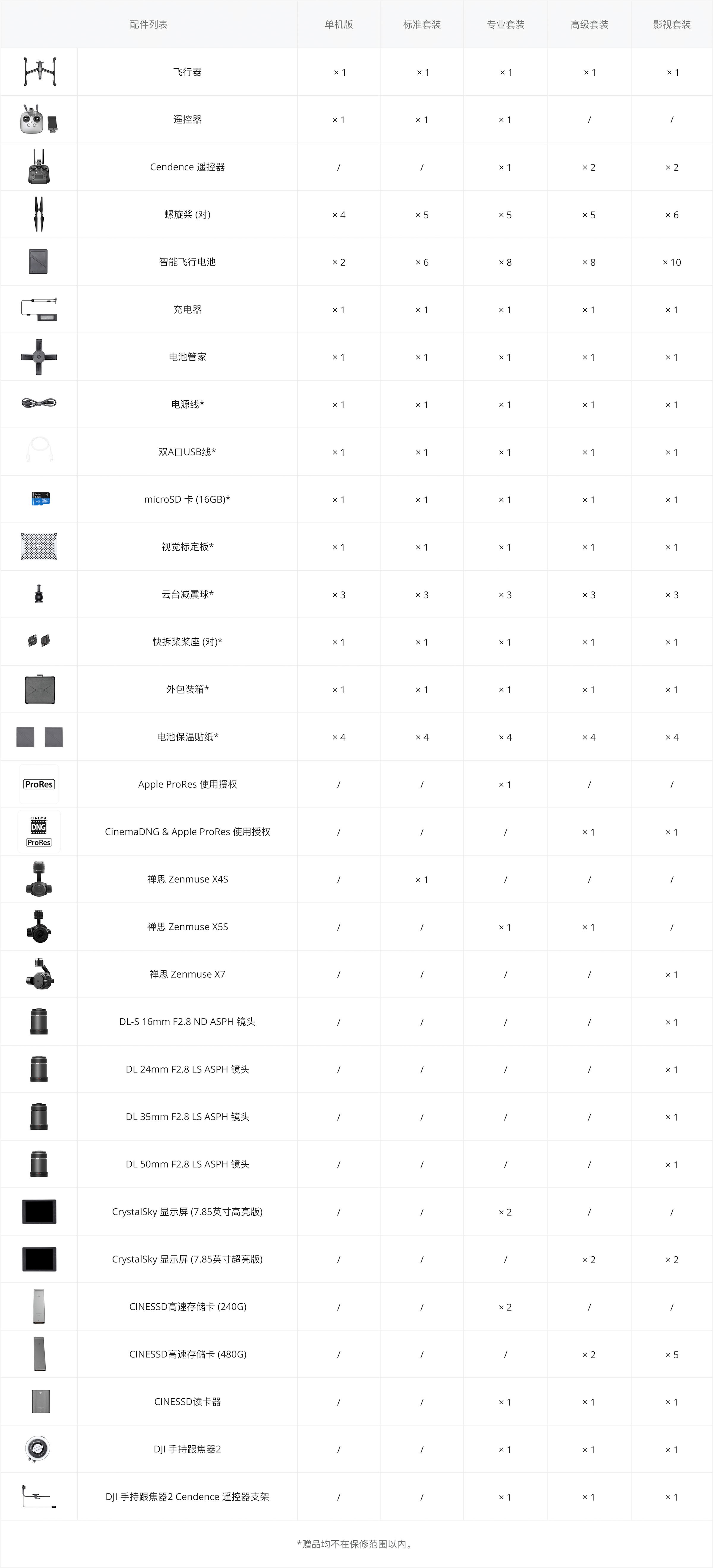 满足专业电影制作严苛需求的禅思X7相机,采用S35传感器,支持6KCinemaDNG 无损视频拍摄,动态范围高达14档。全新的大疆DL卡口系统更紧凑,配备4款8K高解析力镜头, 5块480GDJI CINESSD高速存储卡和8块电池的超强续航,外加Cendence遥控器和CrystalSky 超亮显示屏的专业组合,堪称电影航拍利器。
