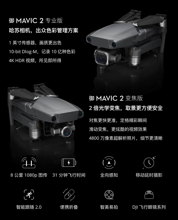 | 起飞重量 | “御” Mavic 2 Pro: 907 g “御” Mavic 2 Zoom:905g |