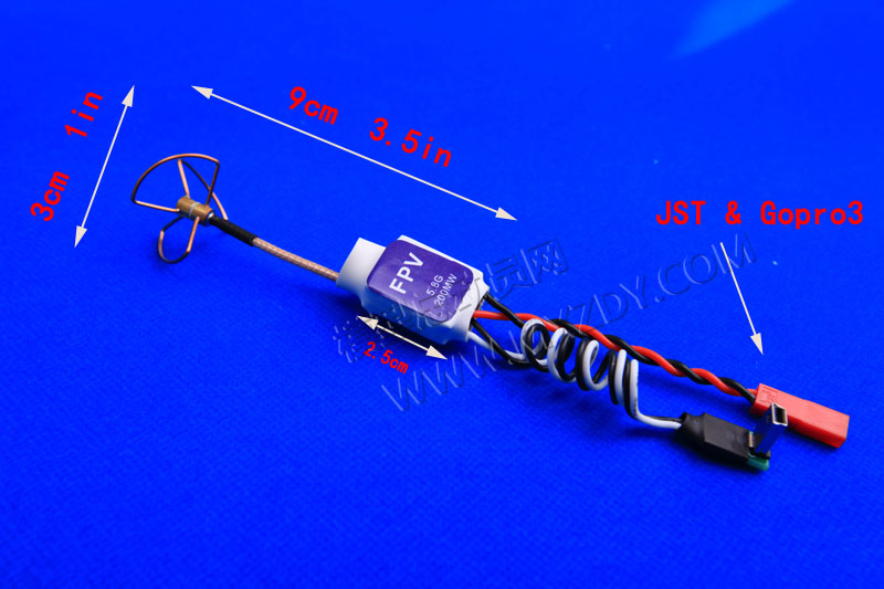 产品名称:超小 5.8G 200mw 三叶草一体微波发射机 / 集成三叶草 支持2-6S 仅10g FVM200