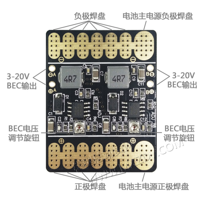 产品名称:双路 3-20V可调电压BEC输出迷你集线板