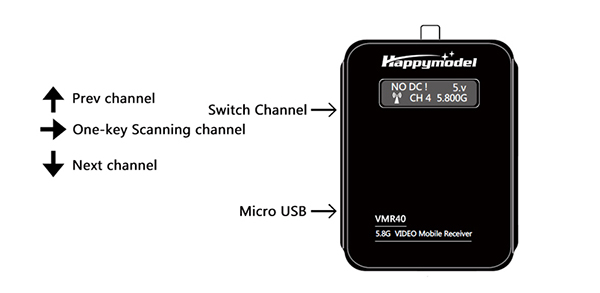 VMR40是一款通用型超便捷5.8G 40频点图传接收机,接收图像支持3种方式显示: