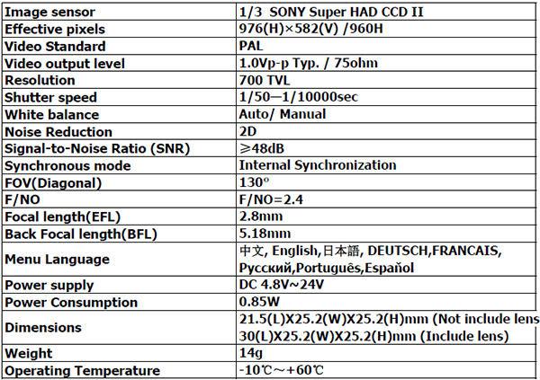 产品名称:FPV专用 130°广角 700线 摄像头 SJCAM101 / PAL 输入DC4.8-24V