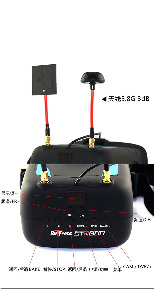 Rutforce Str800 5.8G 40通道 双接收 视频眼镜 / 800*480分辨率 内置DVR