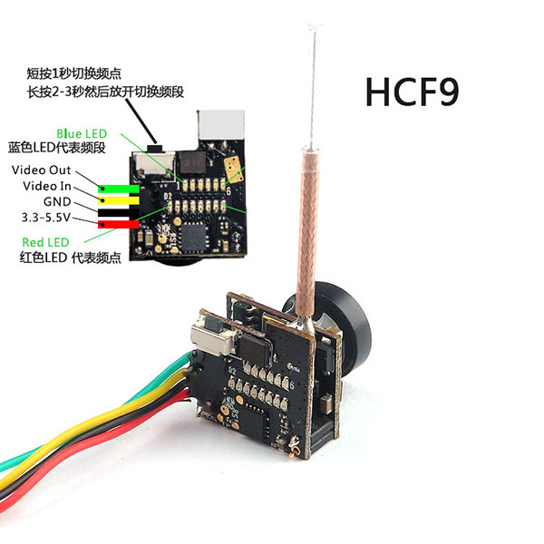 超轻HCF9 5.8G 48ch 25mw FPV穿越机图传摄像头一体机 内置OSD