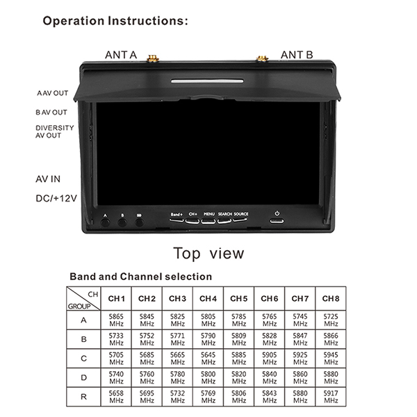 5.8G 40通道 双接收 7寸显示器 LT5802S / 内置电池 带DVR