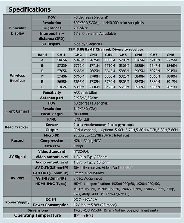 SKYZONE 03 FPV 视频眼镜 5.8G 双接收 DVR / 白色款
