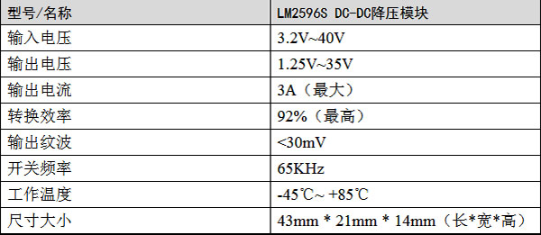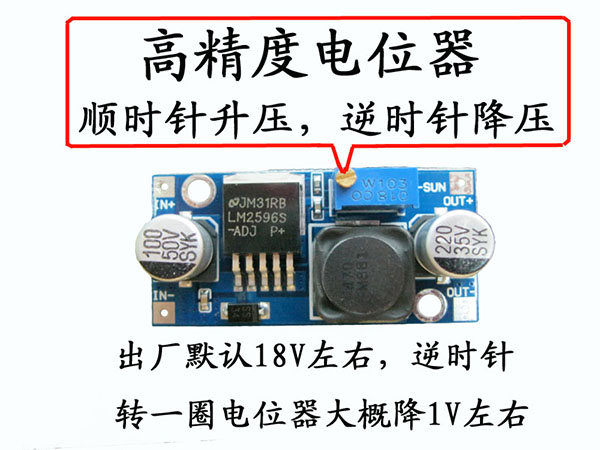 注:此为降压模块,输入电压必需比输出电压高。