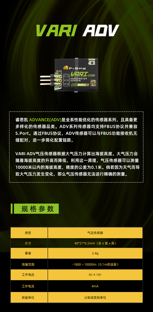 FrSky 睿思凯 Vari ADV 高精度 气压传感器 支持S.PORT接收机