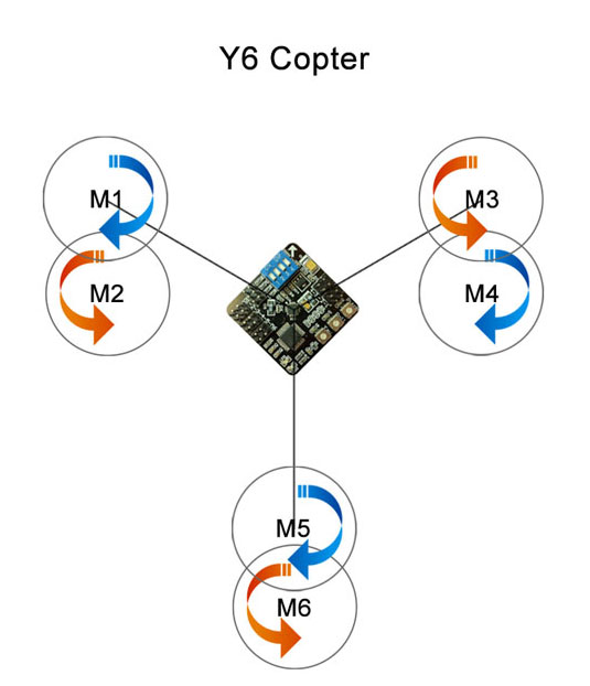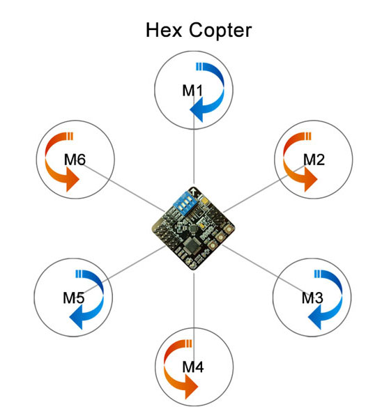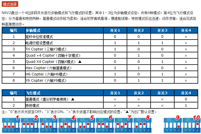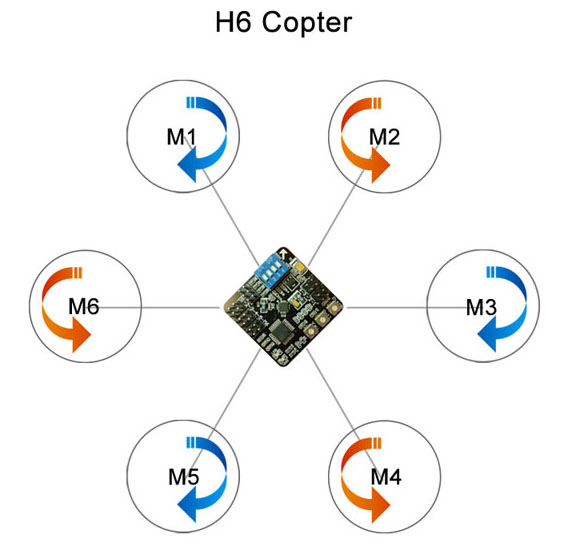 ★ 同时支持三轴Tri(Y3)、四轴十字、四轴X字、六轴Hex、六轴H6、六轴Y6等6种常见的多轴模式,通过开关轻松进行切换;