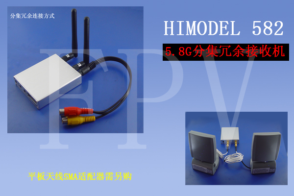 HIModel 582 5.8g 双路冗余分集FPV接收机,可很好的解决玩家飞行过程中的信号接收,增加接收角度以及提高信号质量,采用双路高频接收模块.可做为单独的2路独立使用,也可工作于2路信号的冗余切换.系统会自动选择信号好的一路来输出.这就意味着,当使用冗余功能时,你的输出信号永远是两路信号中图像质量较好的一路.当玩家使用双平板定向天线的时候,可为玩家带来更广的接收角度以及更远的接收距离.