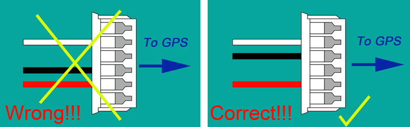 特别说明,厂家提示,最近到货的GPS连线,因为加工厂问题,可能会有个别GPS连线的线序有错误,请根据图示修正.