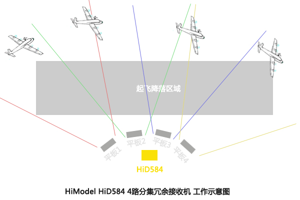 HiModel 最新款 5.8G 4路分集冗余接收机,可以实现180度甚至更大范围的图像接收,使用冗余功能时,系统会优先使用信号最好的天线接收,这意味着,您在任何时候,系统所提供的信号总是最佳的一路.