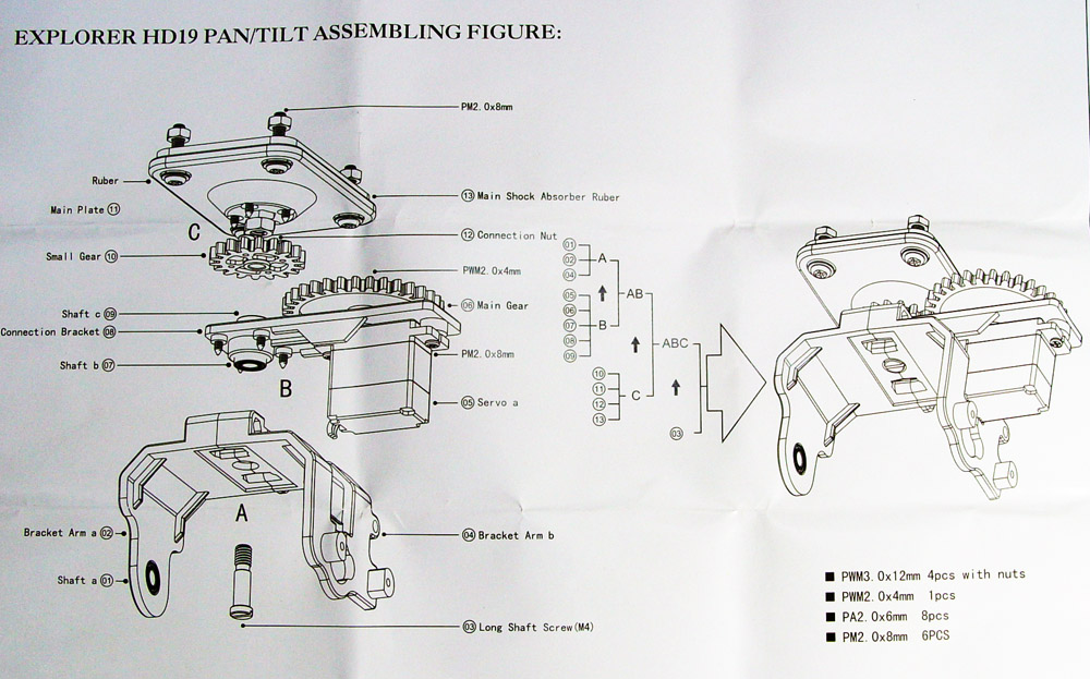 所需舵机: 9g (推荐云台专用舵机,如 180度和360度舵机) 舵机并不包含,需要另购