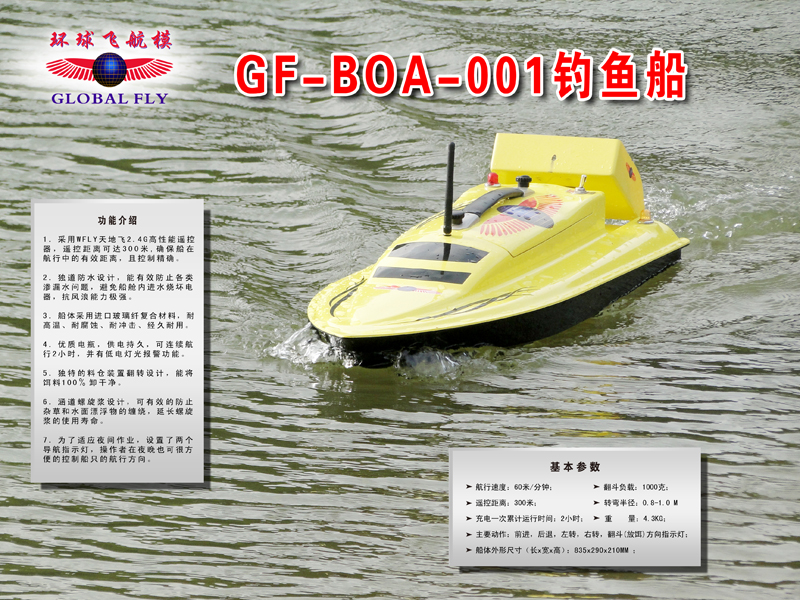 1.采用天地飞WFLY遥控器,遥控距离最远可达500米, 确保船在航行中不失控而且控制精确。