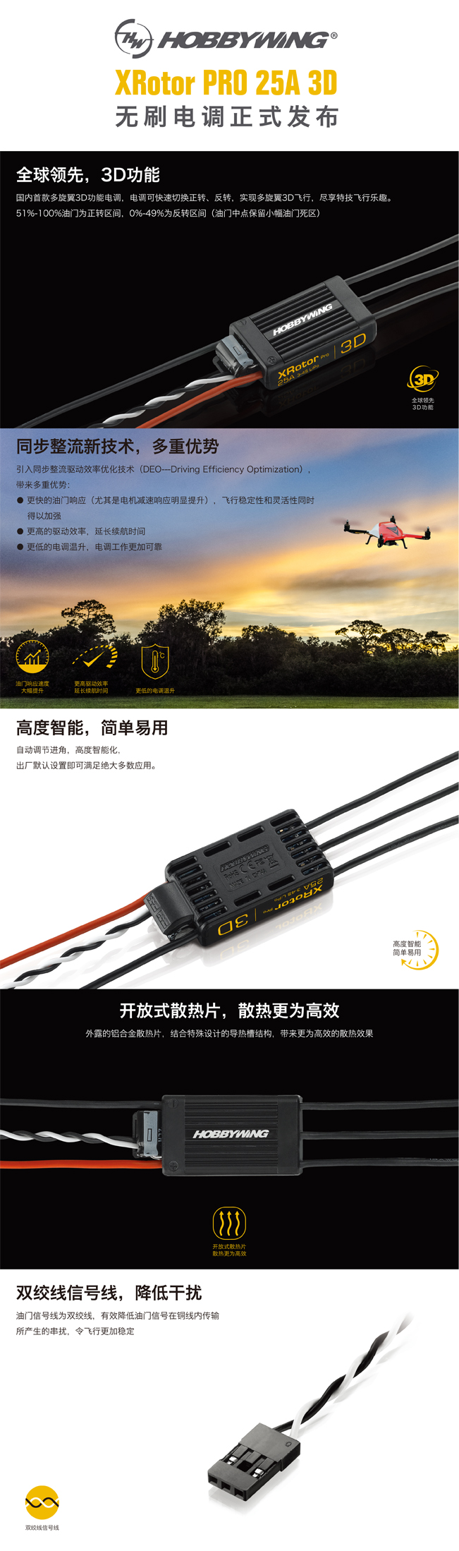 HobbyWing 好盈 乐天 XRotor-Pro-25A-3D 专业型多旋翼电调(2只装)