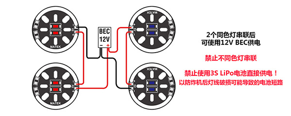 产品名称:Matek LED X2/5V 电机座灯 红色 / 兼容1806,2204,2206电机安装孔 2片装