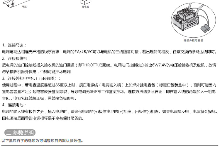 聚合物锂电(Li-Poly)、镍氢(NiMh)电池(组)、充电器、(无刷)马达、电子调速器、电量显示器等