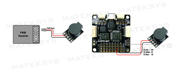 两种模式,可用在固定翼直升机上用传统的PWM接收机控制,也可以用于穿越机飞控上,当作5V有源蜂鸣器。板载单片机驱动,声音比普通5V有源蜂鸣器大的多。