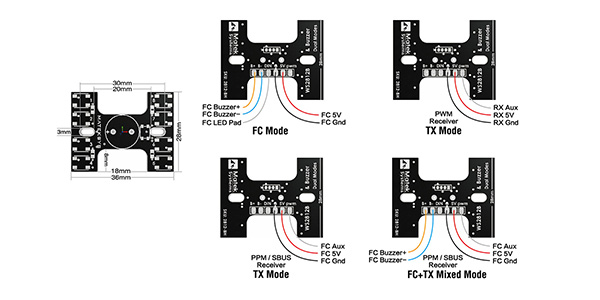产品名称:Matek H型 双模式 穿越机 WS2812B尾灯 超大声蜂鸣器