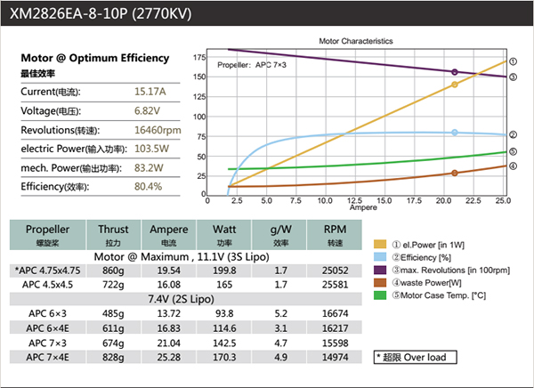 产品名称:双天 XM2826EA-8 2770KV 固定翼用无刷外转子马达 / 高KV版