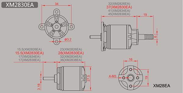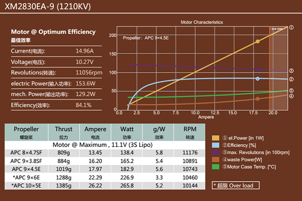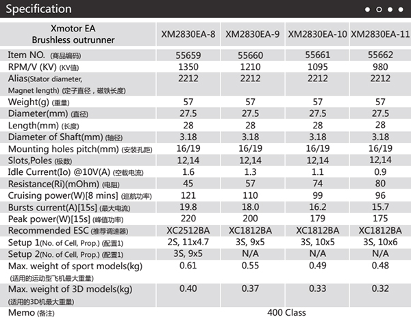 产品名称:双天 XM2830EA-9 1210KV 固定翼用无刷外转子马达