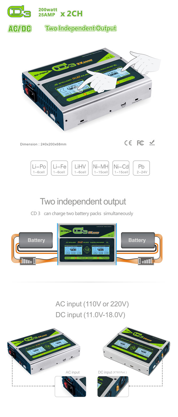 | NiCd/NiMH battery cell count | 1 - 15cells |