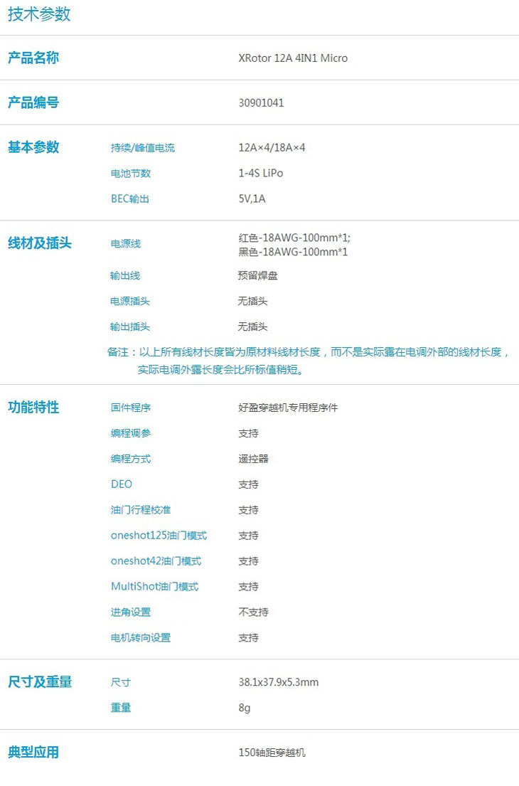 HOBBYWING 好盈 乐天 XRotor-12A 四合一电子调速器