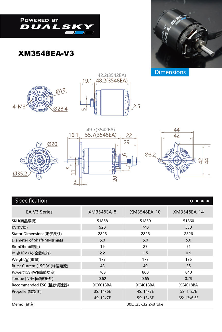 1 x 双天 XM3548EA-14 530KV 3代 固定翼用无刷外转子马达