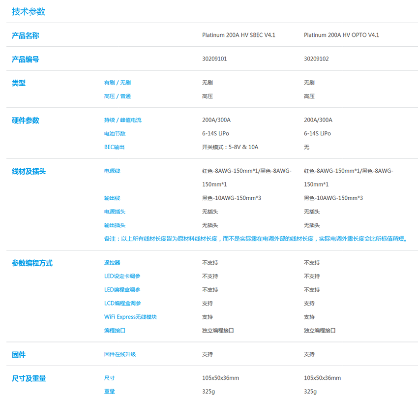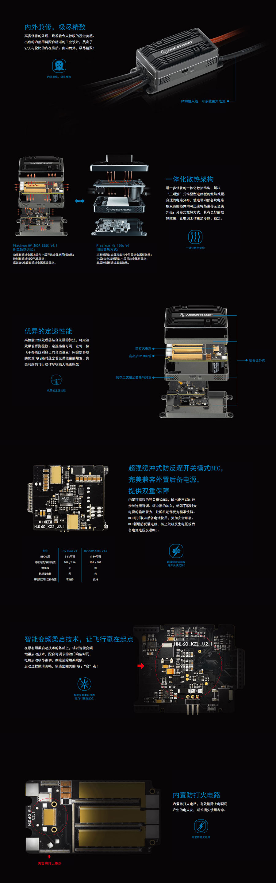 HOBBYWING 好盈 PLATINUM-200A-HV-SBEC-V4.1 铂金系列 无刷电子调速器
