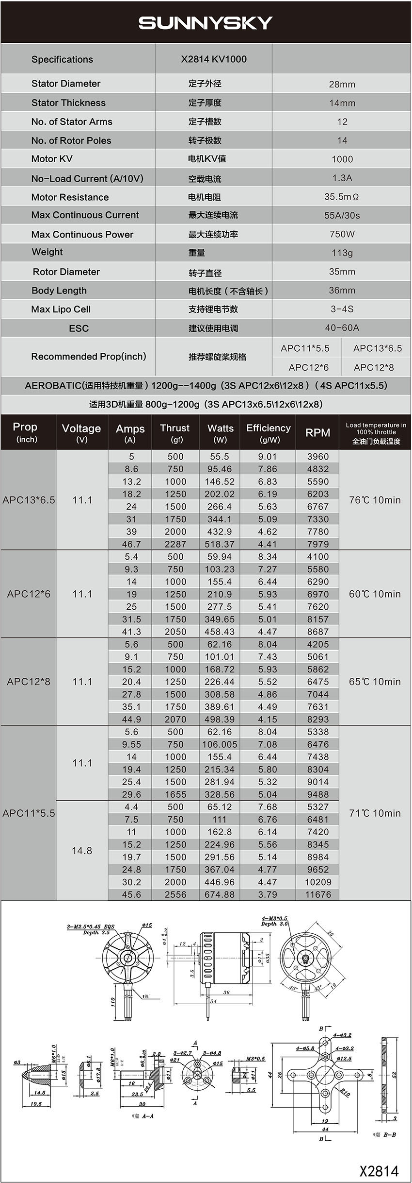SUNNYSKY 朗宇 X2814 1000KV 三代 无刷电机