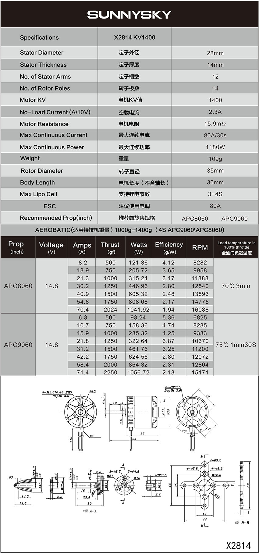 SUNNYSKY 朗宇 X2814 1400KV 三代 无刷电机